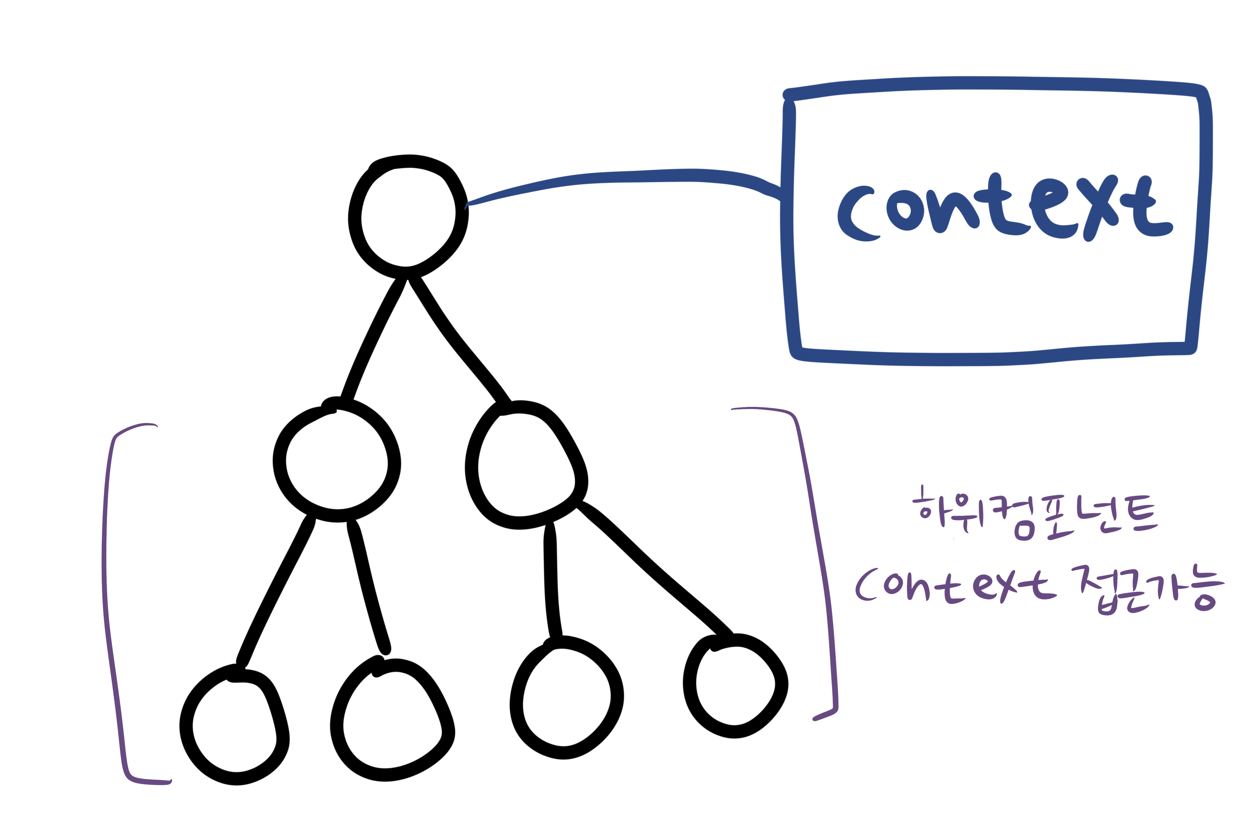 이 값이 필요한 컴포넌트에 context 상자를 연결하면 그 순간부터 해당 컴포넌트 하위에 있는 컴포넌트들은 context 상자 데이터에 접근할 권한을 얻게 되는 것이다.