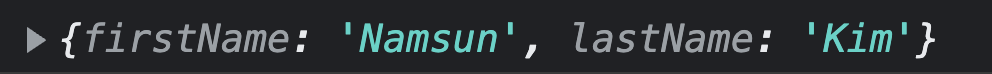 ]);{ firstName: 'Kim', lastName: 'Namsun', age: 1 }Object.fromEntries(